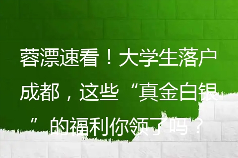 蓉漂必看!大学生落户成都,这些红利别错过!前言成都这个地方,作为新一线城市当中的一个代表,为了能够吸引并且留住青年人才,