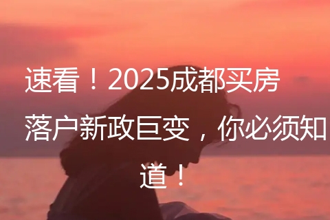 速看!2025年成都买房落户政策迎来重大调整!随着2025年这个时间点的慢慢临近,有关于成都落户政策的各种讨论可以说是越