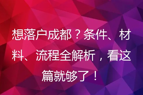 一、成都落户政策概览