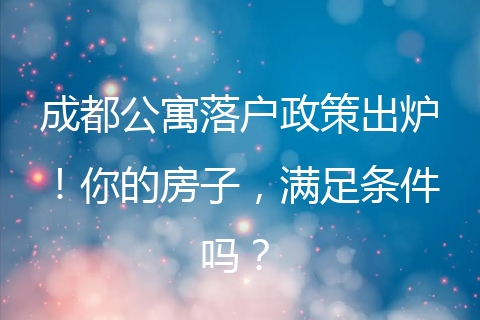 成都公寓落户政策详解,你的房子符合要求吗?