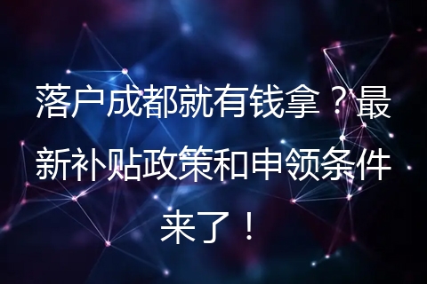 落户成都还能领钱?最新补贴政策与申领条件一文读懂!